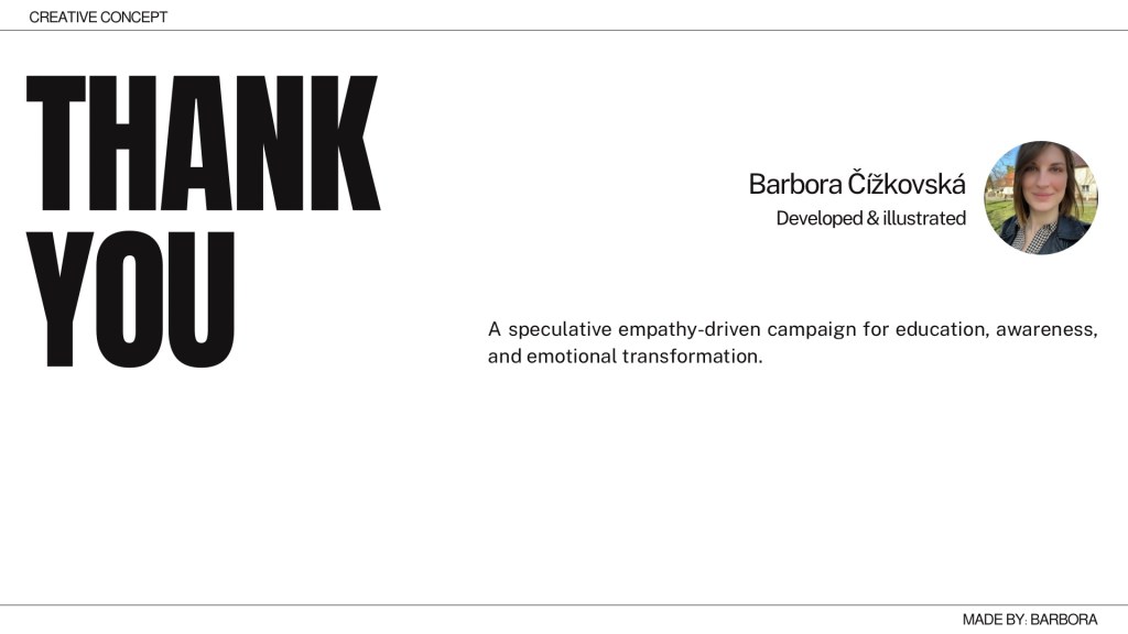 If we can change how animals are portrayed – if we present them not as statistics or packaged products, but as individuals – we might help people reconnect. If we show one animal at a time, give it a story, and treat it with the same love we treat our pets – we can reduce consumption, raise awareness, and foster respect.